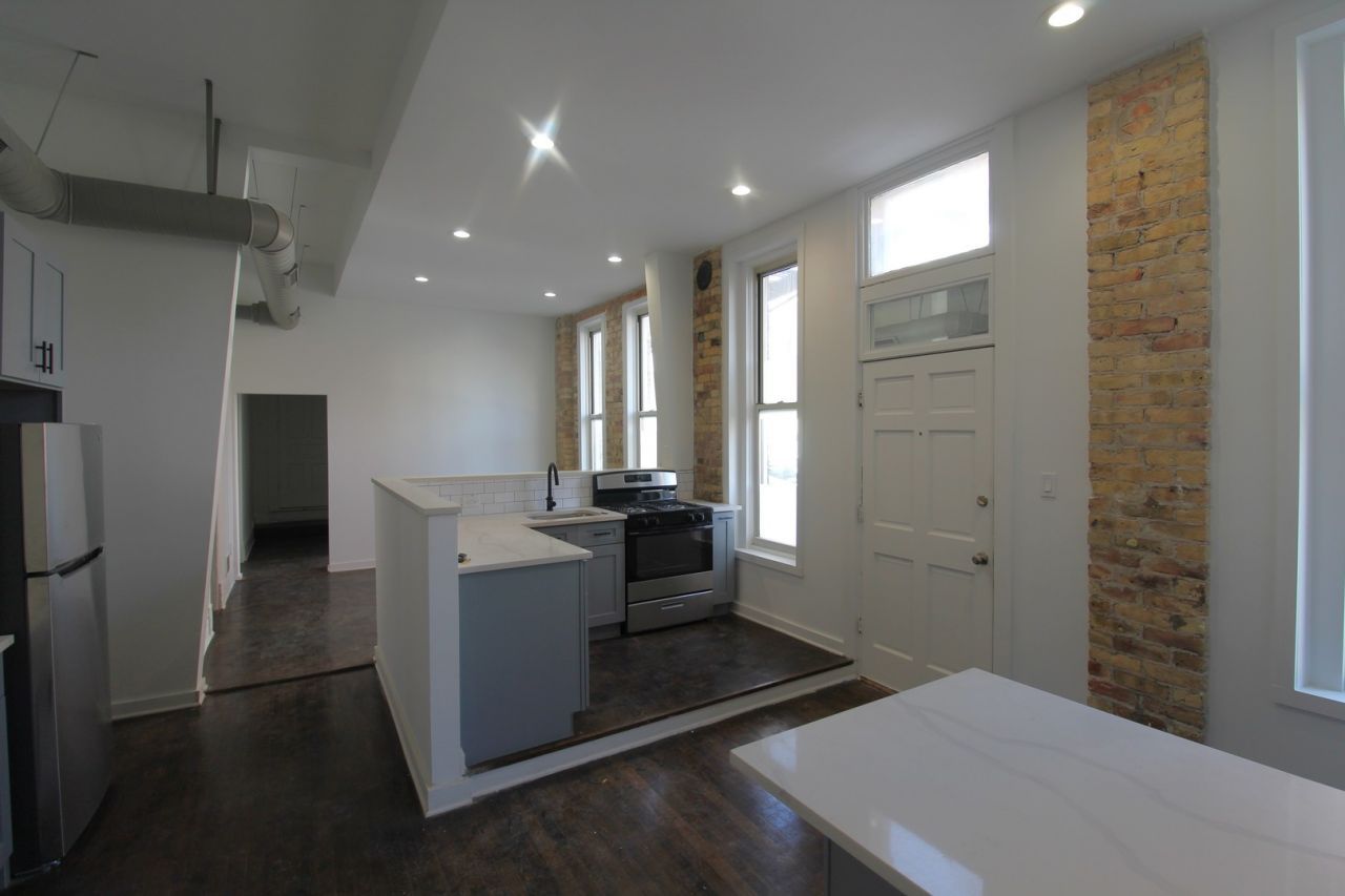 Brand new 3 bed 1 bath renovation for rent in the Noble Square neighborhood. The apartment features a large high end kitchen with quartz countertops and stainless steel appliances. Large living area with tall windows and hardwood floors, central heat and air, and laundry in unit. This apartment is in a great location, walk to everything. This space is conveniently located 1 lock from Jewel and the brand new Lowes shopping center. Also near boutique shopping, cafes, and many restaurants! The blue line train stop is about 2 blocks away. Small pets ok with a $30 monthly pet rent! $65 dollar application fee per person and $400 move in fee per bedroom. Tenants pays all utilities plus a $135 RUBS fee, which covers common electric, water, and trash removal. Rent is net effective with 1/2 month free on a 12 month lease, lease will read $3125.